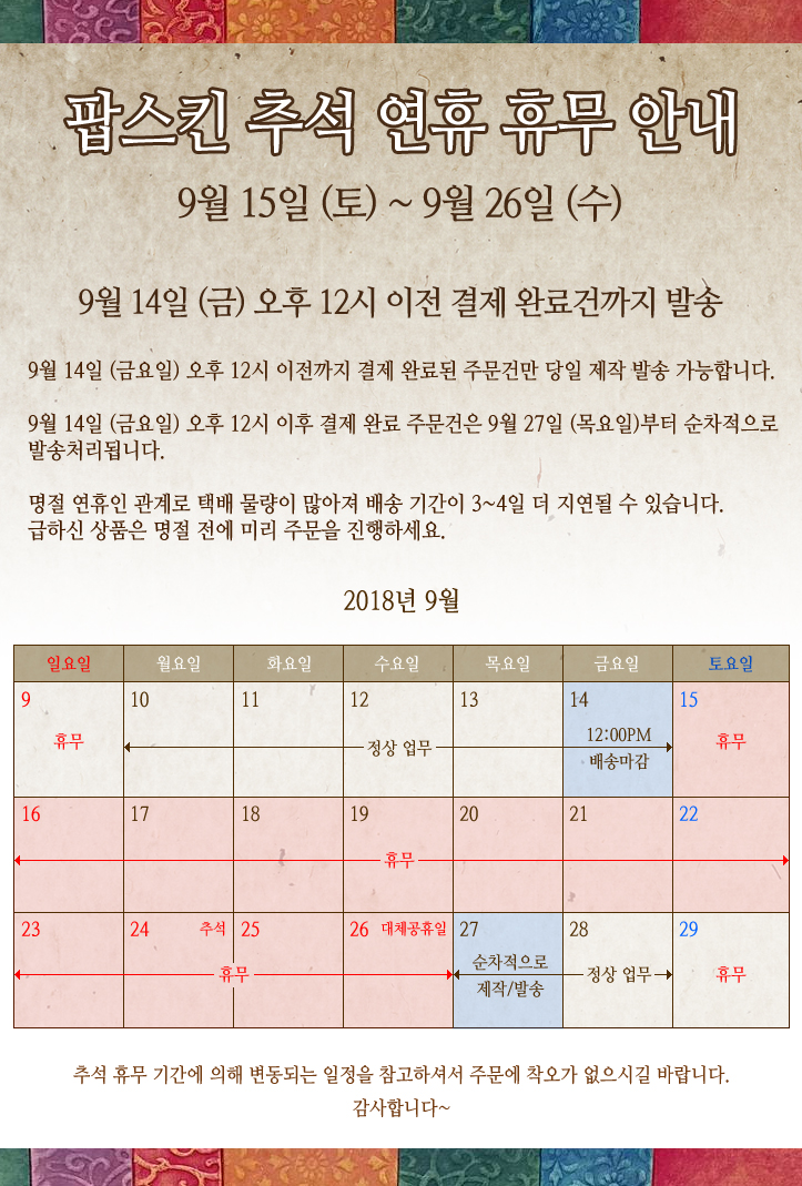¼îÇθô > °øÁö»çÇ× > [°øÁö] 2018³â Ãß¼® ¿¬ÈÞ ÈÞ¹« ¾È³» (9¿ù 15ÀÏ ~ 9¿ù 26ÀÏ)