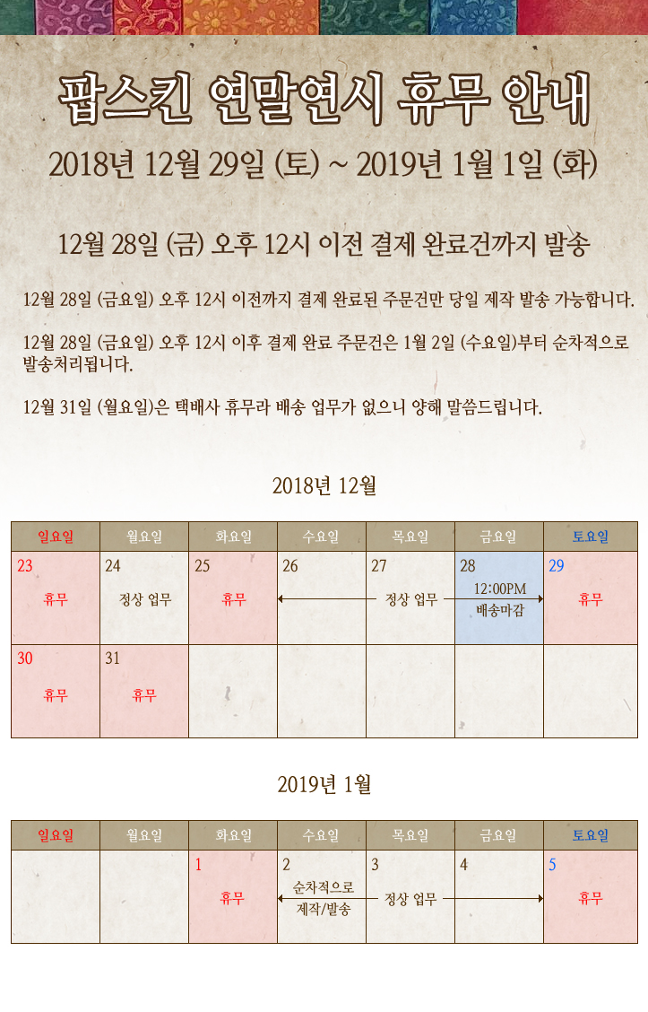[°øÁö] 2018³â ¿¬¸»¿¬½Ã ÈÞ¹« ¾È³» (12¿ù 28ÀÏ ~ 1¿ù 1ÀÏ)