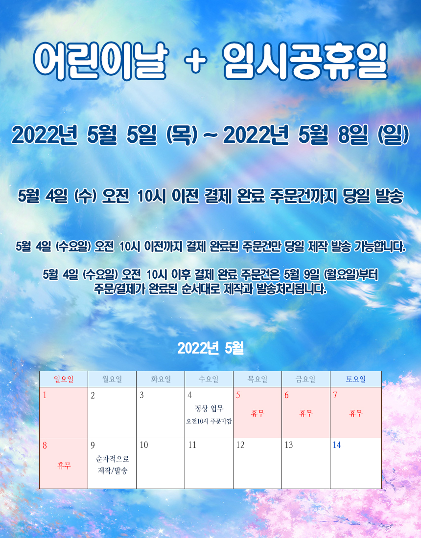 [°øÁö] 2022³â ¾î¸°À̳¯ + ÀӽðøÈÞÀÏ ÈÞ¹« ¹× ¹è¼Û ÀÏÁ¤ ¾È³»ÀÔ´Ï´Ù.