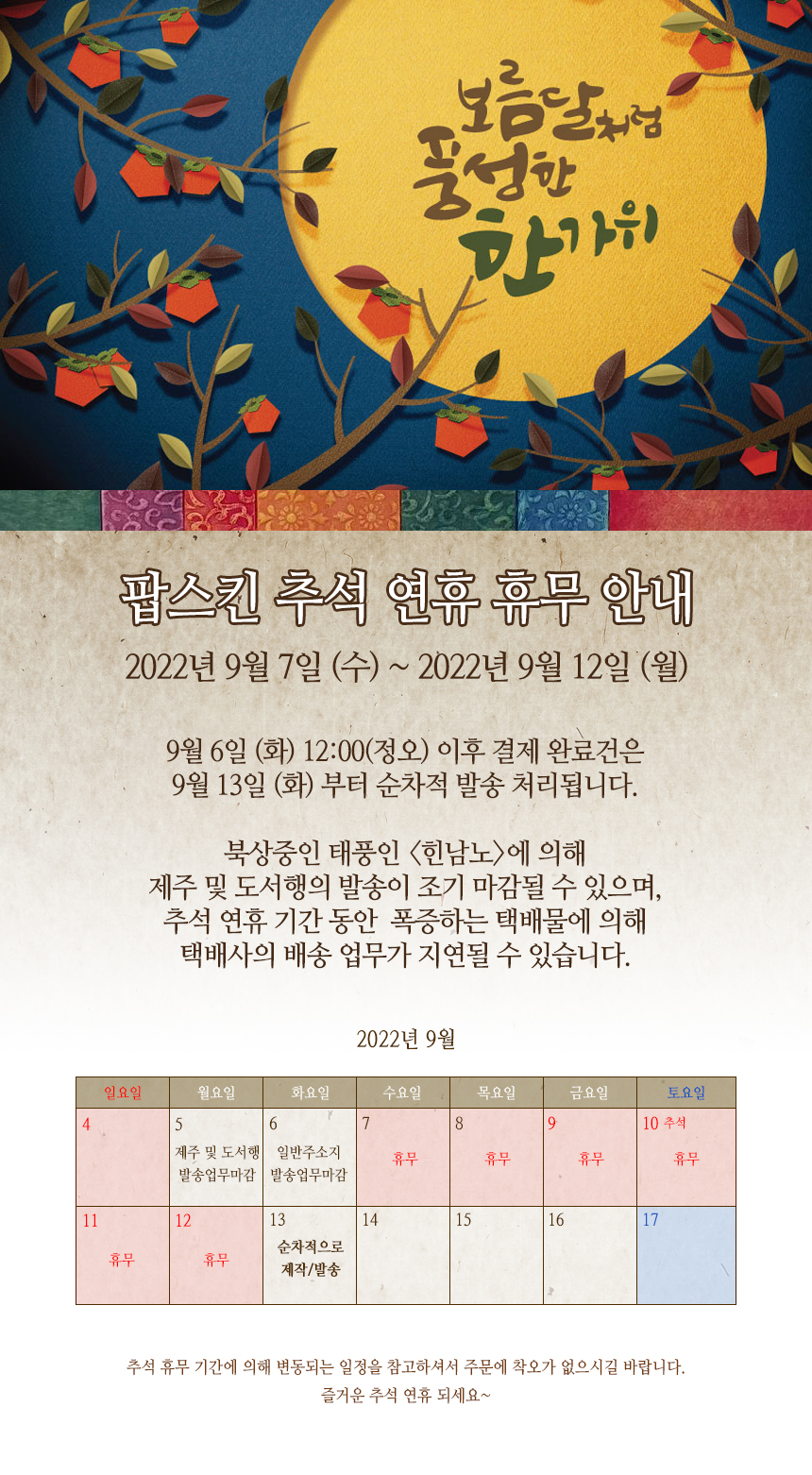 [°øÁö] 2022³â Ãß¼® ¿¬ÈÞ ÈÞ¹« ¾È³»ÀÔ´Ï´Ù.